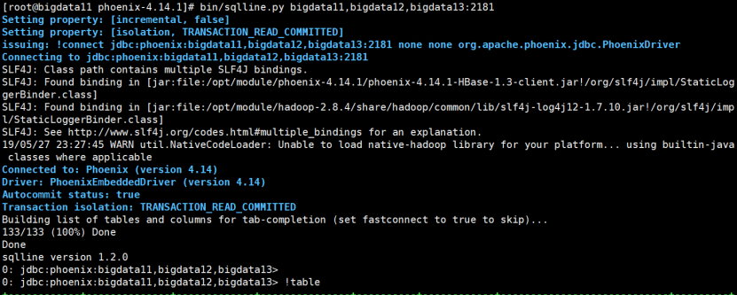 [root@bigdata111 phoenix-4.14.1]# bin/sqlline.py bigdata111:2181