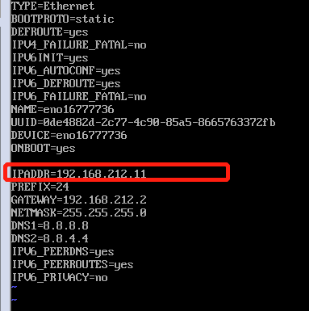 vi /etc/sysconfig/network-scripts/ifcfg-eno16777736(要按Tab自动补全,双击Tab可查看含有打入字母的所有的文件的全名)