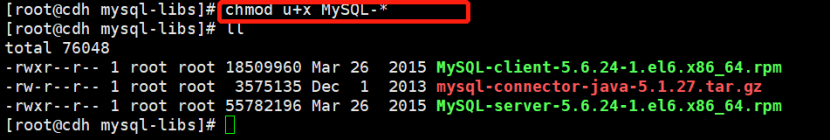 [root@cdh mysql-libs]# chmod u+x MySQL-*