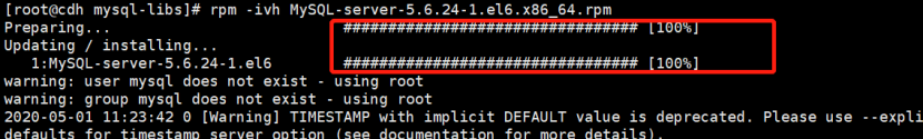 [root@cdh mysql-libs]# rpm -ivh MySQL-server-5.6.24-1.el6.x86_64.rpm
