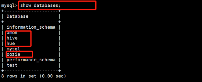 (1)集群监控数据库 create database amon DEFAULT CHARSET utf8 COLLATE utf8_general_ci; 因为已经配置了远程操作权限所以下面的这行就不用了。(下同) grant all on amon.* TO 'amon'@'%' IDENTIFIED BY 'amon'; (2)hive数据库 create database hive DEFAULT CHARSET utf8 COLLATE utf8_general_ci; grant all on hive.* TO 'hive'@'%' IDENTIFIED BY 'hive'; (3)oozie数据库 create database oozie DEFAULT CHARSET utf8 COLLATE utf8_general_ci; grant all on oozie.* TO 'oozie'@'%' IDENTIFIED BY 'oozie'; (4)hue数据库 create database hue DEFAULT CHARSET utf8 COLLATE utf8_general_ci; grant all on oozie.* TO 'hue'@'%' IDENTIFIED BY 'hue'; |