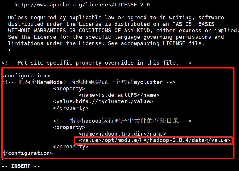 1)具体配置-三台同时配置--/opt/module/HA/hadoop-2.8.4/etc/hadoop/下