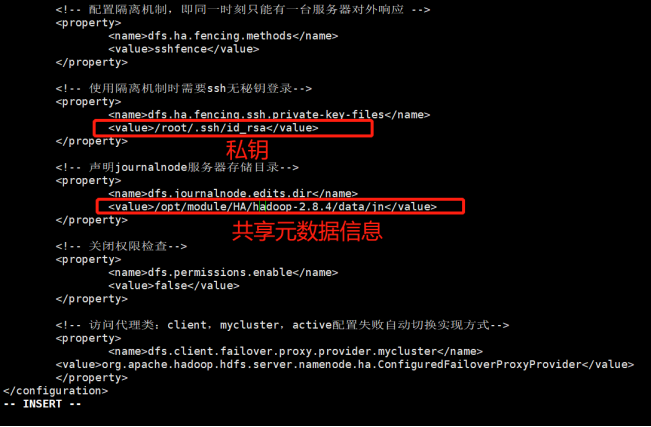 <!-- 使用隔离机制时需要ssh无秘钥登录--> <property> <name>dfs.ha.fencing.ssh.private-key-files</name> <value>/root/.ssh/id_rsa</value> </property>