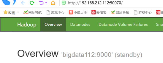 [root@bigdata112 bin]# jps3444 QuorumPeerMain3750 DFSZKFailoverController2312 JournalNode3528 NameNode3595 DataNode3835 Jps