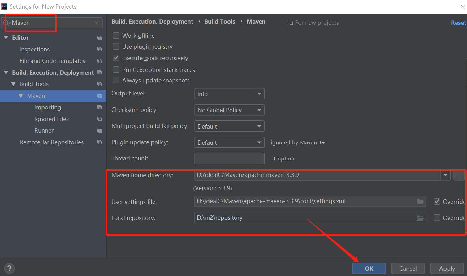 这样在创建其它项目的时候,Maven的设置都不用再修改了。