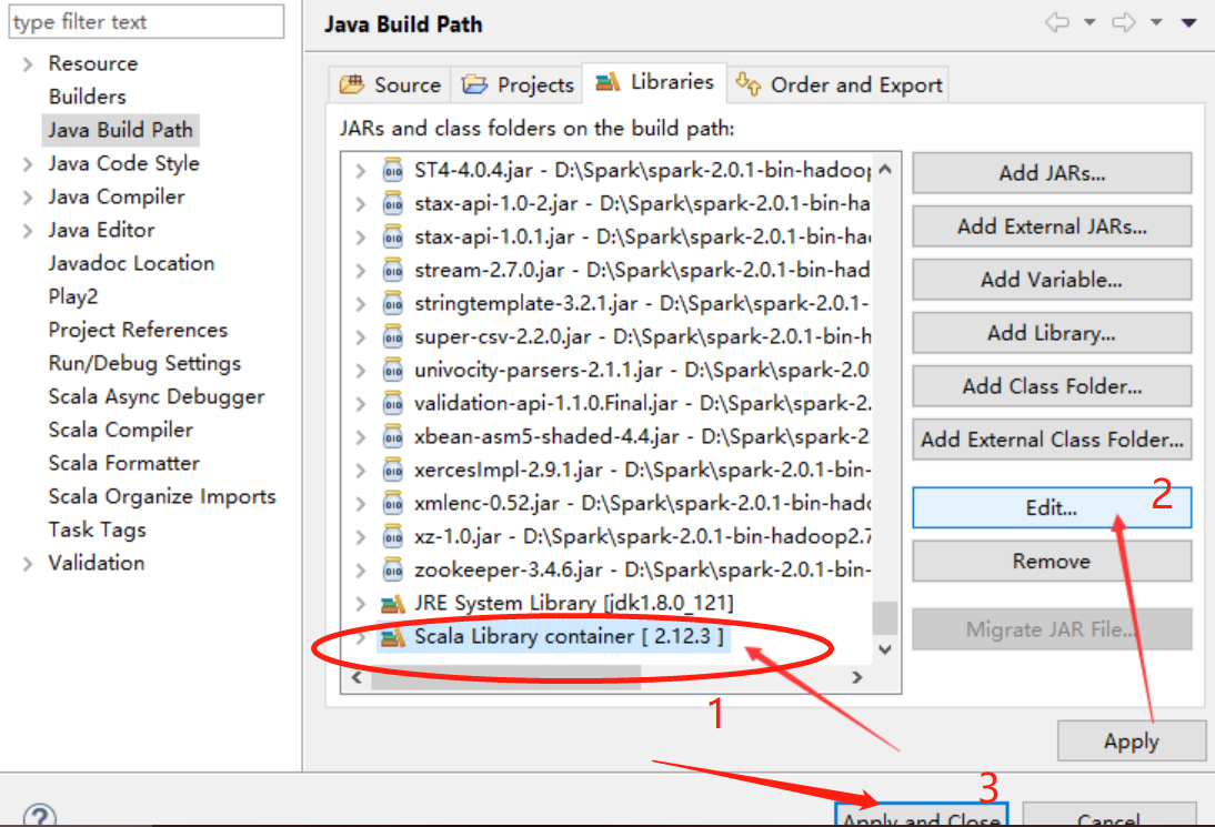 右键项目-->Properties-->Libraries-->Scala Library container [2.12.3]-->Edit-->Apply and Close