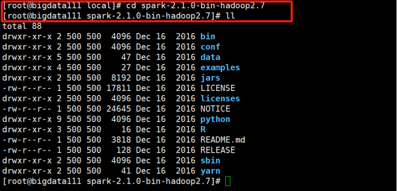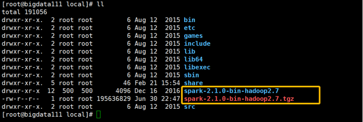 [root@bigdata111 local]# tar -zxvf spark-2.1.0-bin-hadoop2.7.tgz
