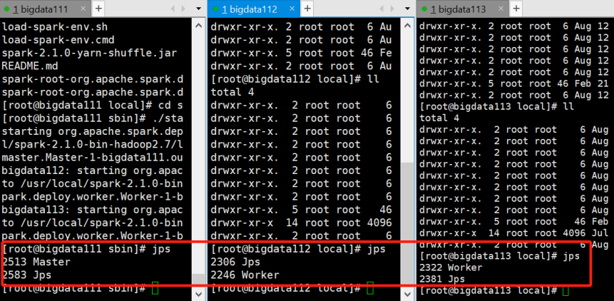 [root@bigdata111 local]# scp -r spark-2.1.0-bin-hadoop2.7 root@bigdata113:/usr/local/