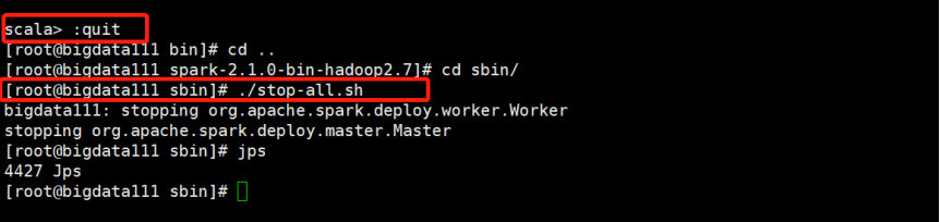 [root@bigdata111 spark-2.1.0-bin-hadoop2.7]# ./sbin/start-all.sh