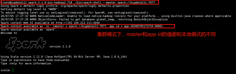 [root@bigdata111 spark-2.1.0-bin-hadoop2.7]# ./bin/spark-shell --master spark://bigdata111:7077
