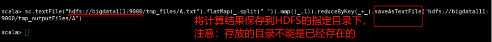 注-1: 这里的9000是自己安装部署Hadoop时,core-site.xml文件内设置的HDFS-NameNode所在的端口号, 参考:https://www.cnblogs.com/liuxinrong/articles/12667617.html 注-2:saveAsTextFile()可以将结果文件存入本地,但是分情况。 如果Spark是伪分布式(Master和Slave在一个节点上),是没问题的; 但是如果有多个slave,那在写数据的时候就会往本地的多个路径上写数据(因为本地有多台主机),就有可能出现问题。 |