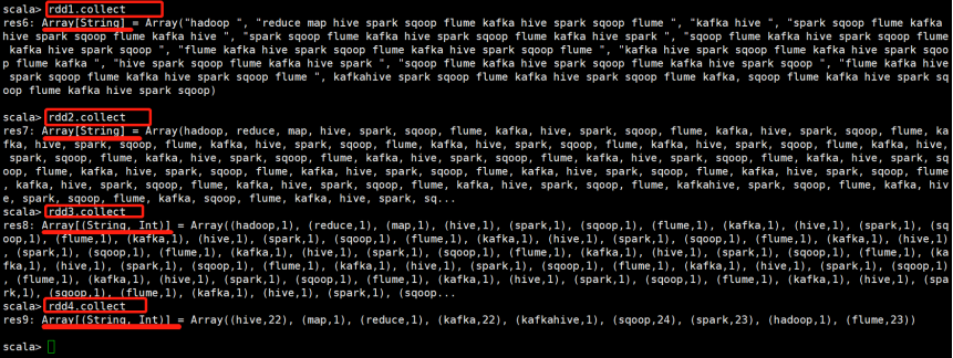 这样就都能打印出他们的值了,因为数据都由RDD转变成了Array