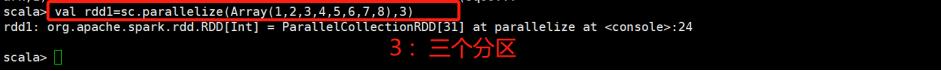 val rdd1 = sc.parallelize(Array(1,2,3,4,5,6,7,8))
