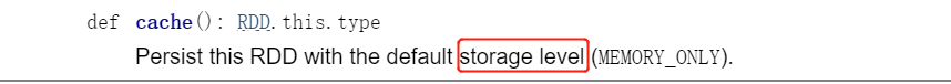 通过查看源码发现cache最终也是调用了persist方法,默认的存储级别都是仅在内存存储一份,Spark的存储级别还有好多种,存储级别在object StorageLevel中定义的。