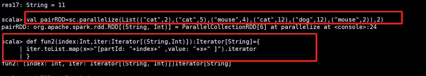 res73: Array[(String, Int)] = Array((dog,12), (cat,19), (mouse,6))