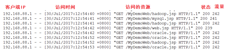 * 192.168.88.1 - - [30/Jul/2017:12:54:42 +0800] "GET /MyDemoWeb/web.jsp HTTP/1.1" 200 239