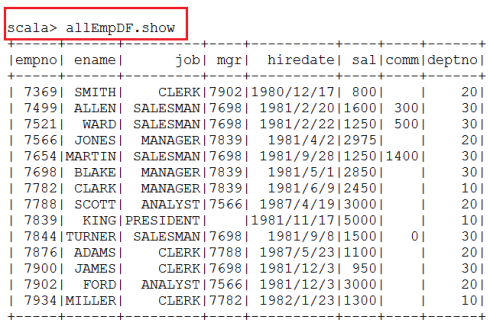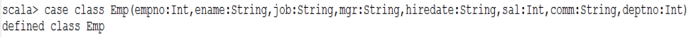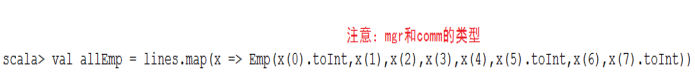 注意:由于mgr和comm列中包含null值,简单起见,将对应的case class类型定义为String