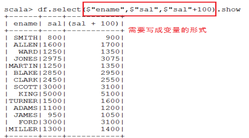 4.查询所有员工的姓名和薪水,并给所有员工的薪水涨100元钱-$