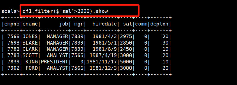 5.过滤出薪水大于2000的员工的信息-.filter()