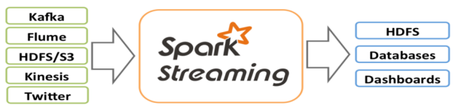 数据可以从诸如Kafka,Flume,Kinesis或TCP套接字等众多来源获取,并且可以使用由高级函数(如map,reduce,join和window)开发的复杂算法进行流数据处理。最后,处理后的数据可以被推送到文件系统,数据库和实时仪表板。