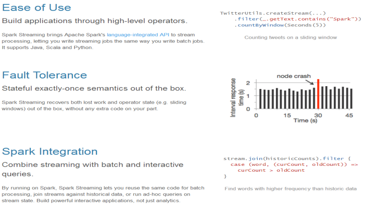 Spark Streaming makes it easy to build scalable fault-tolerant streaming applications.