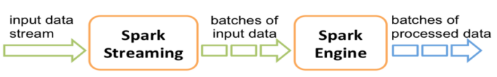 Spark Streaming接收实时输入数据流,并将数据切分成批,然后由Spark引擎对其进行处理,最后生成“批”形式的结果流。