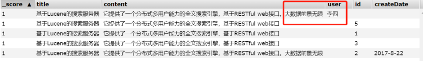 第二次修改可见第一条数据又在原来的基础上新增了一列-user值为“李四”: