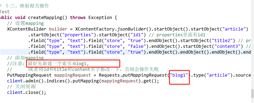 .field("type", "text").field("store", "true").endObject().startObject("title2") // properties里面有title2