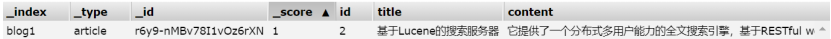 {"id":"2","title":"基于Lucene的搜索服务器","content":"它提供了一个分布式多用户能力的全文搜索引擎,基于RESTful web接口"}
