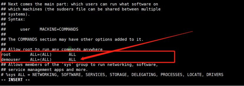 vim /etc/sudoers -----------为用户赋予sudo权限