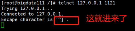 [root@bigdata111 bin]# telnet 127.0.0.1 1121