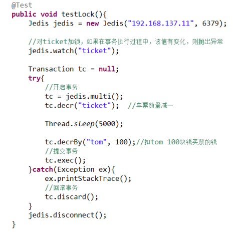 Redis锁机制(简单的锁):执行事务操作的时候,如果监视的值发生变化,则提交失败。