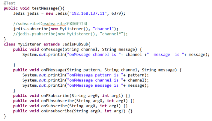 使用Java程序实现消息的发布与订阅,需要继承JedisPubSub类
