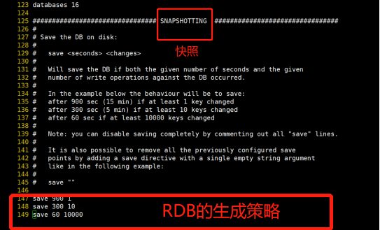 149 save 60 10000 在60秒内,如果有10000个key发生变化,就执行rdb
