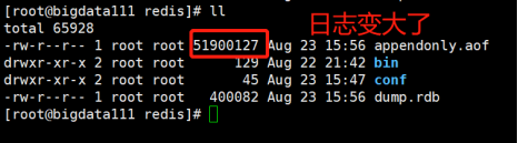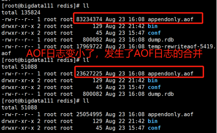 可以看到AOF日志变小了,这说明这段期间发生了日志的合并。
