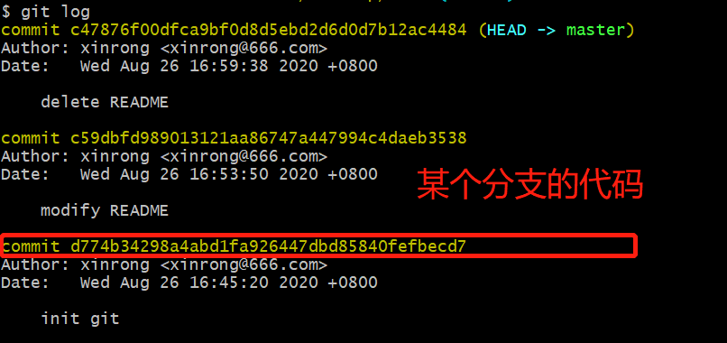 2)根据分支的代码,恢复到删除前的状态: