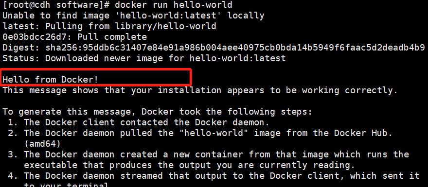 如上图出现Hello from Docker即运行成功!