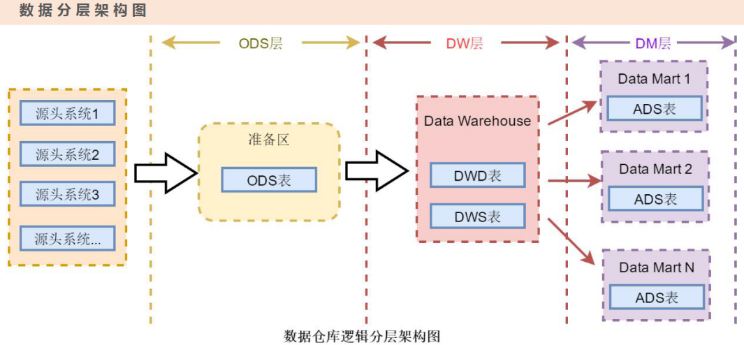 ADS(集市数据层,也称应用层):主要是各个业务方或者部门基于DWD和DWS建立的数据集市(DM),数据集市是相对于数据仓库来说的。