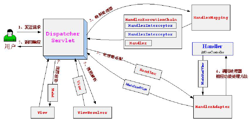 通过可配置的HandlerMapping(映射处理器)、controller(控制器)ViewResolver( 视图解析器)进行mvc的模式的体现。