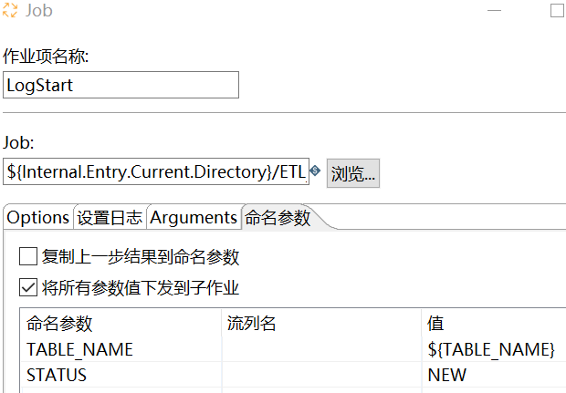 设置命名参数:TABLE_NAME、STATUS