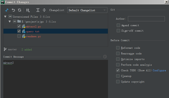 就会弹出如下界面,勾选需要提交的文件,点击commit提交即可,最后进行push。