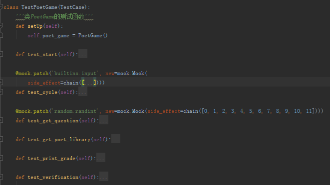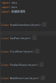 5)在编程过程中采用了结构化编程,这种方法减少了bug的产生,更加利于后续程序的调试和修改。比如在团队开发的诗词大赛游戏中,对每一种游戏模式都单独建立了一个类,在每个类中,对每一个稍微复杂一点的功能都单独编写成了函数进行调用,这样不仅提高了程序的可重复性使用性能,而且在调试过程中,更加容易找出存在问题的位置,从而对代码进行修改。