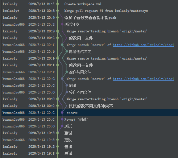 在配置管理方面,学会了利用github对不同项目的代码进行存储、更新,学会了建立分支对开发过程进行管理,学会了团队合作开发时如何利用github对代码进行修改、合并,尤其是大家同时操作同一个文件时如何解决代码冲突问题,样例: