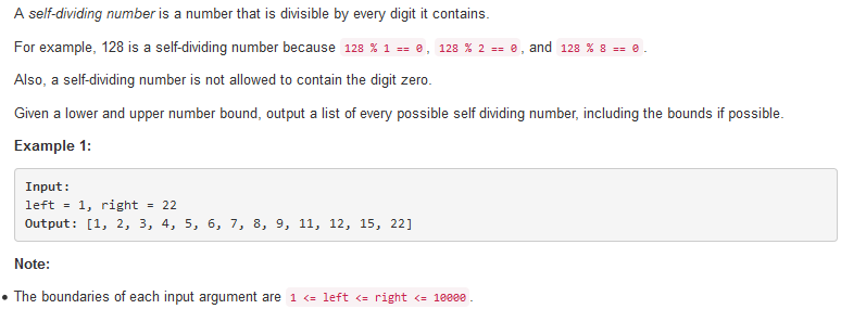 728. Self Dividing Numbers