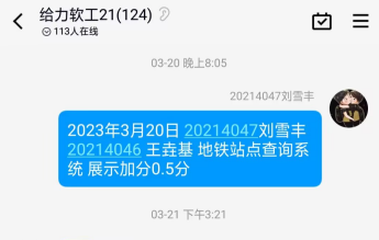 2023年3月20日,20214047刘雪丰、20214046王垚基,地铁站点查询系统,展示加分0.5分