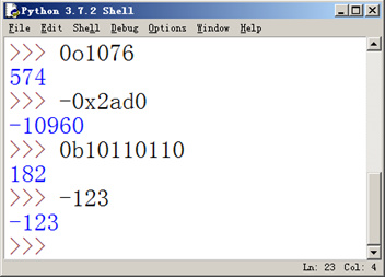 指不带小数点的整数,包括正数、负数和0,有十进制、二进制、八进制和十六进制四种表示方法,0b开头的是二进制数,以0O开头的是八进制,以0x开头的是十六进,不带标记的就是十进制数。如下所示,第一个数是八进制数,第二个数是十六进制数,第三个数是二进制数,第四个是十进制数。这里的字母大小写均可。