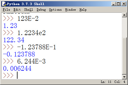 上面算式中,带有字母E的是科学记数表表示的浮点数,其中字母e后面的数代表指数,如12.34e-3表示12.34乘以10的负3次方。