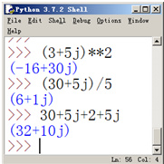其中a和b都是浮点数,比如1.2+0.7j,就是正确的复数表示。 复数在显示时系统会用括号括起来。