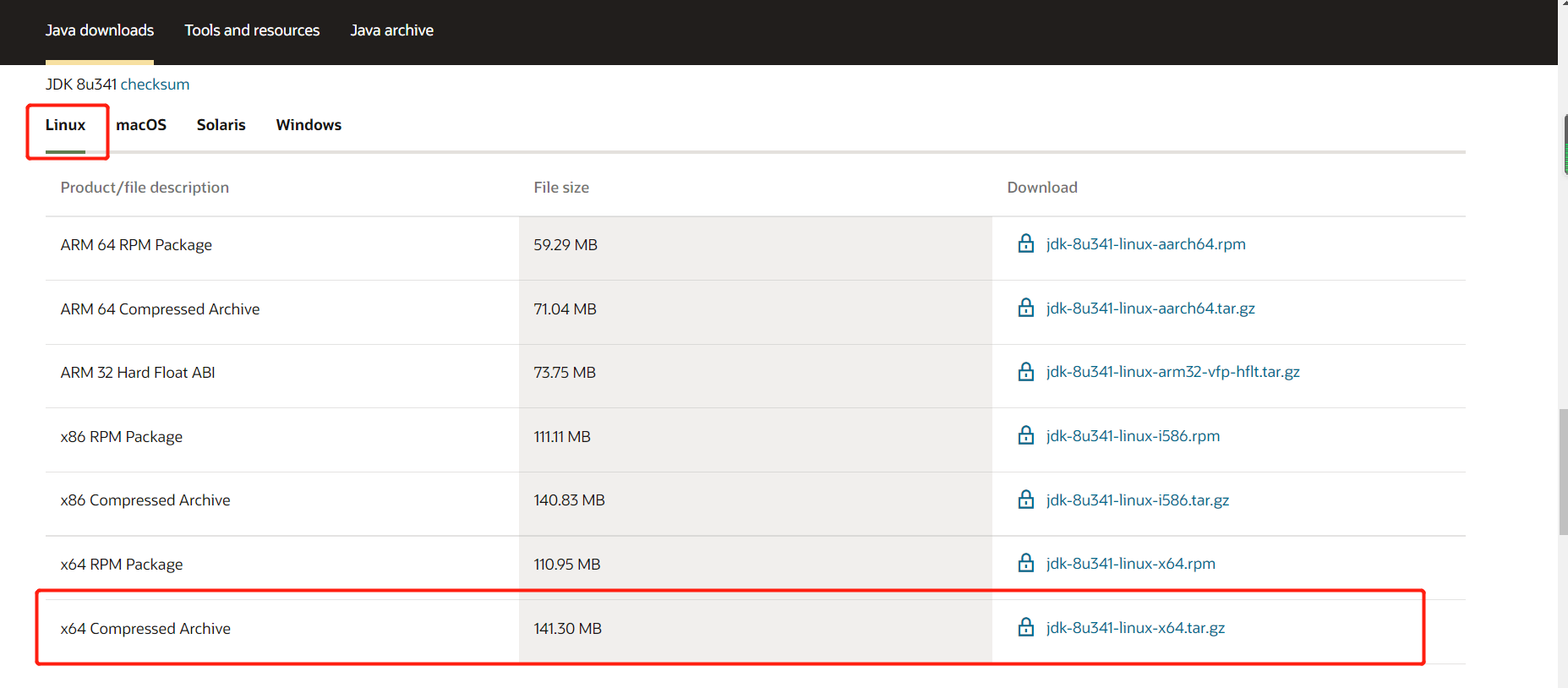 https://www.oracle.com/java/technologies/downloads/#java8-linux