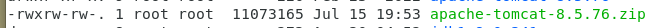 unzip apache-tomcat-8.5.76.zip